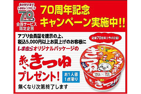 ファッションセンターしまむら、70周年大創業祭は10月25日から!オリジナルパッケージの「マルちゃん 赤いきつね」をプレゼント