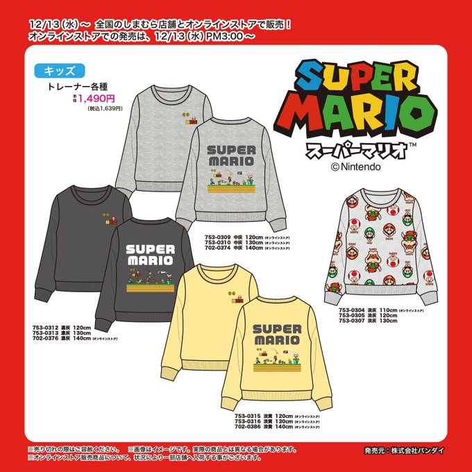 - しまむら、「スーパーマリオ」デザインのキッズトレーナーを12月13日発売 – GAME Watch