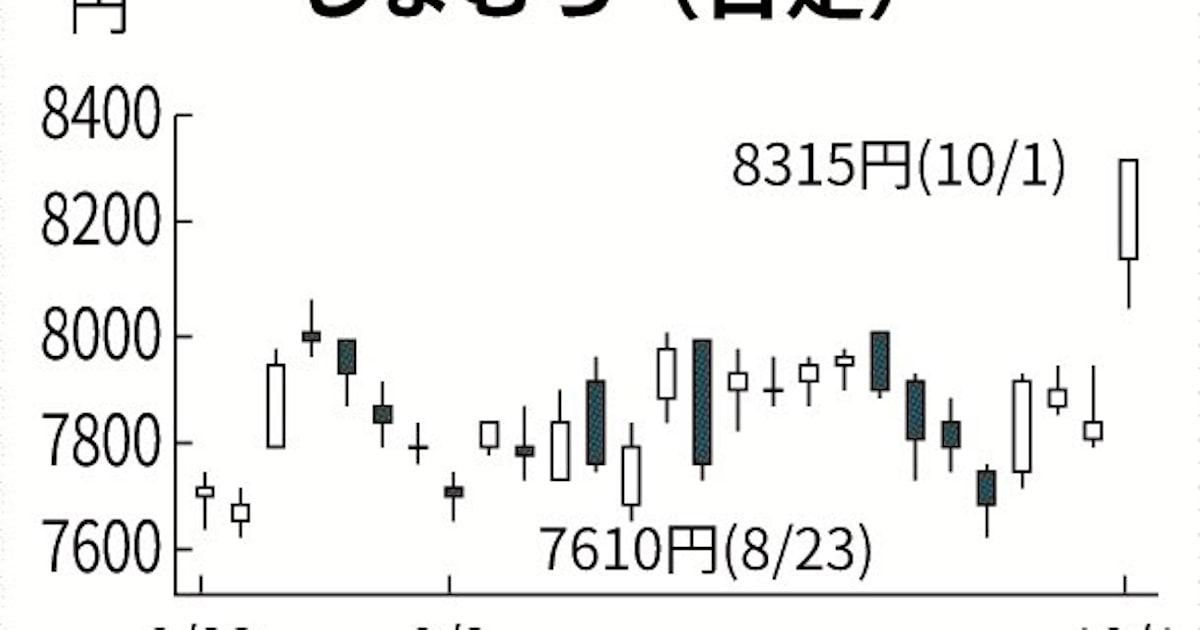 1日の東京株式市場でしまむら株が一時、前日比491円(6%)高の8315円まで上昇した。9月30日に発表した2024年3~8月期の連結純利益が前年同期比5%増の221億円と…
