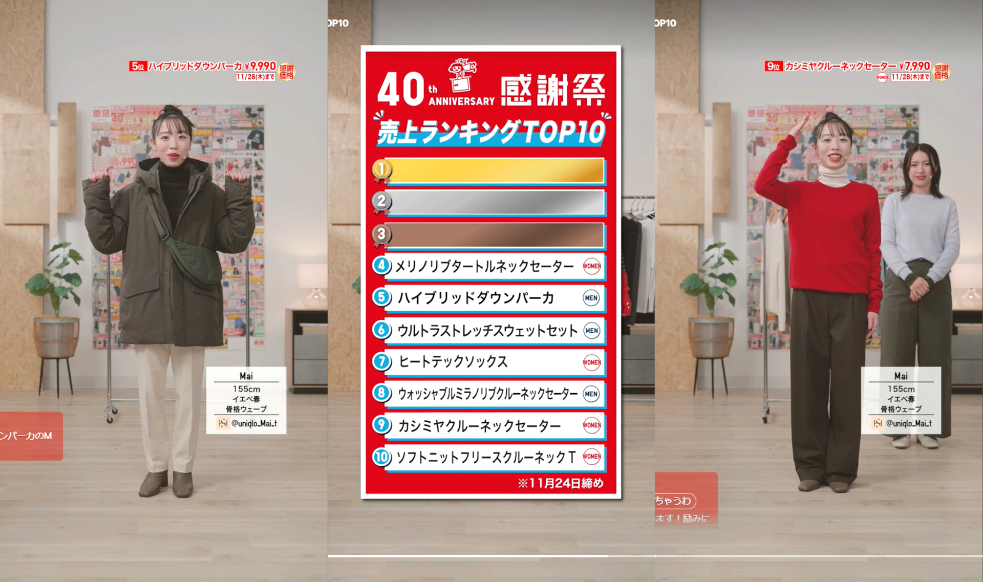 ユニクロは、創業40周年の大セール「ユニクロ感謝祭」を11月28日まで開催している。 公式サイトのライブ配信「感謝祭 第2弾 売上ランキングTOP10」(11月25…