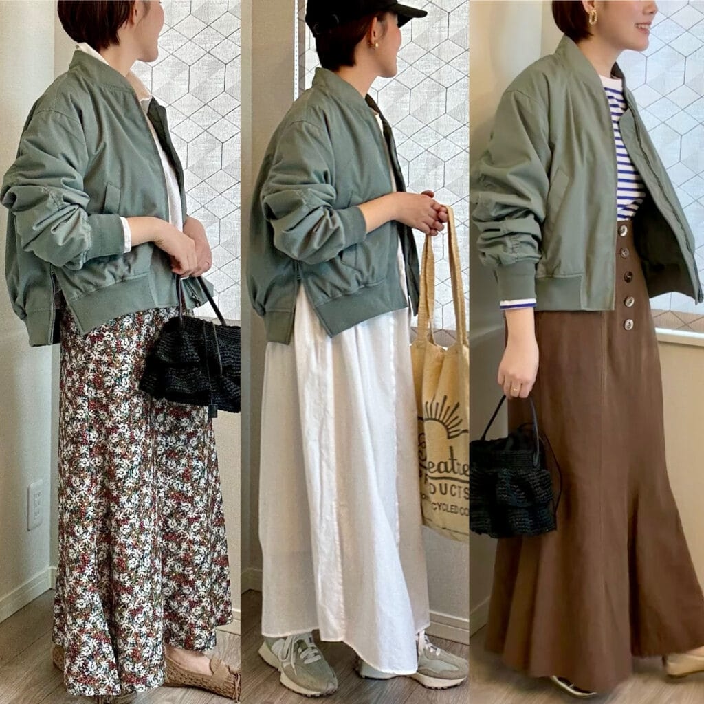 【8コーデ】ユニクロの春アウター「ボマージャケット」を気温別着回し!30代・スカート派 | LEE