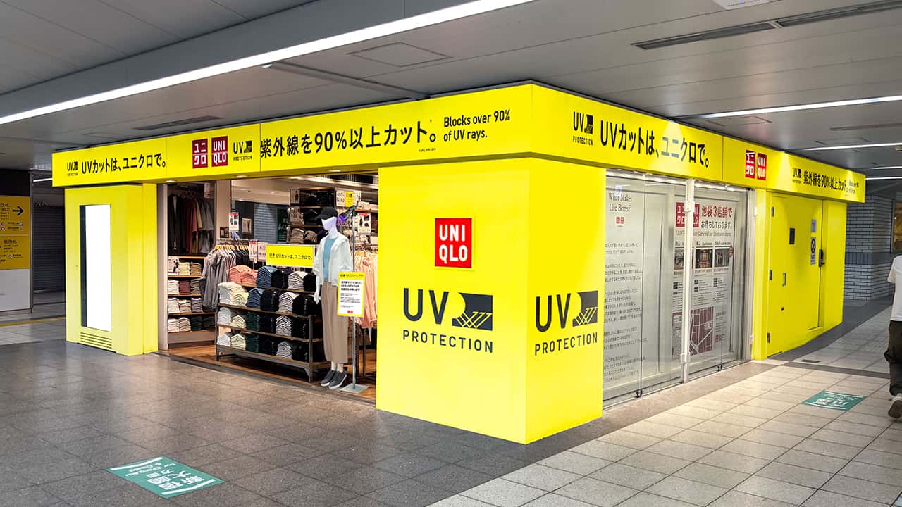 「黄色いユニクロ」登場 ラッピング店舗でUVカットアイテムを訴求